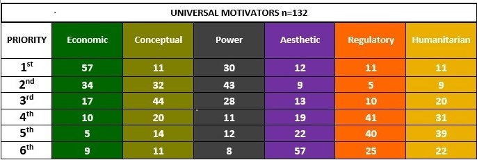 Since an individual’s top three motivators reflect their natural interests, we can learn a lot of information about someone by looking at the items that they place the most value on.
